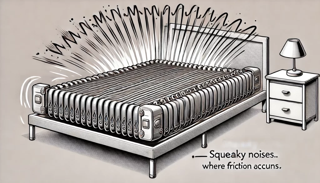 例えば、寝返りを打つたびに「ギシギシ」と音が鳴ることがあるため、特に夜中に気になることがあります。これは、狭いアパートや静かな住宅街など、音が響きやすい環境では大きな問題となりやすいです。