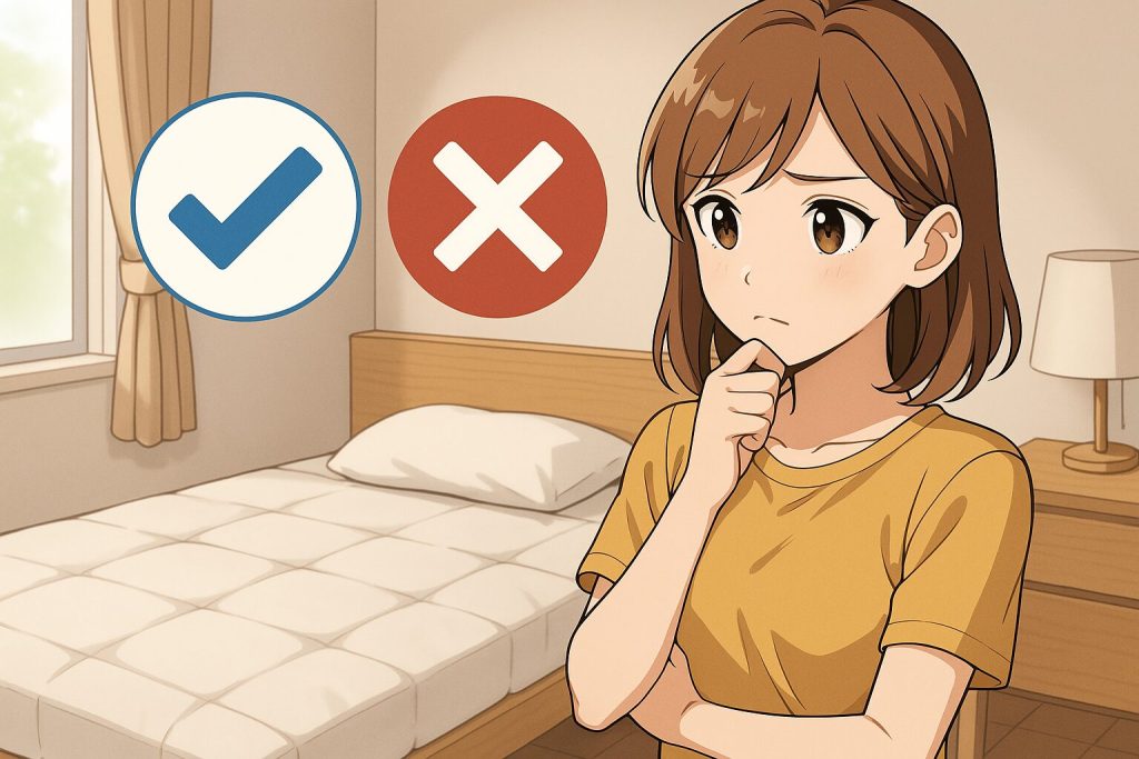 - 厚みや硬さの選択を間違えると寝心地に違和感が出る