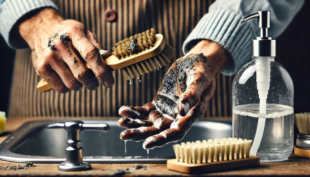 この状態になると、ゴシゴシ洗っても簡単には落ちず、専用の洗浄剤やスクラブ入りのハンドソープを使う必要が出てきます。