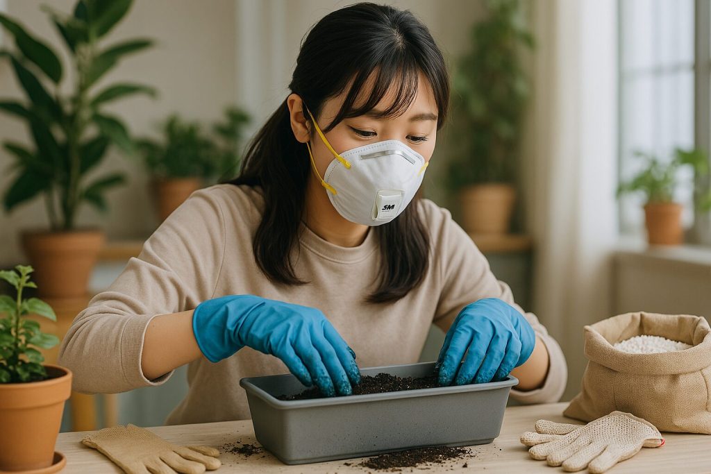 パーライトの袋を開けるときや、用土に混ぜ込む際など、粉塵が舞いやすい場面で活躍します。マスクを使うことで健康リスクを減らし、安心して園芸作業に集中できる環境をつくることができます。