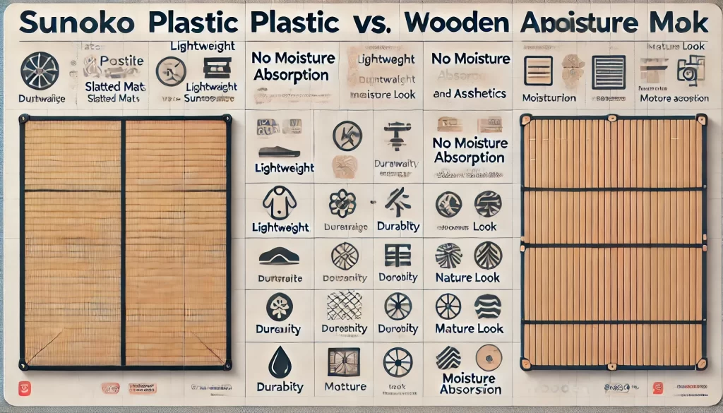 耐久性においては木製すのこの方が長持ちしやすいものの、使用環境や手入れの方法によってどちらの素材も寿命が左右されます。耐久性を重視する場合は、設置場所の環境や使用目的をよく考えて素材を選ぶことが重要です。